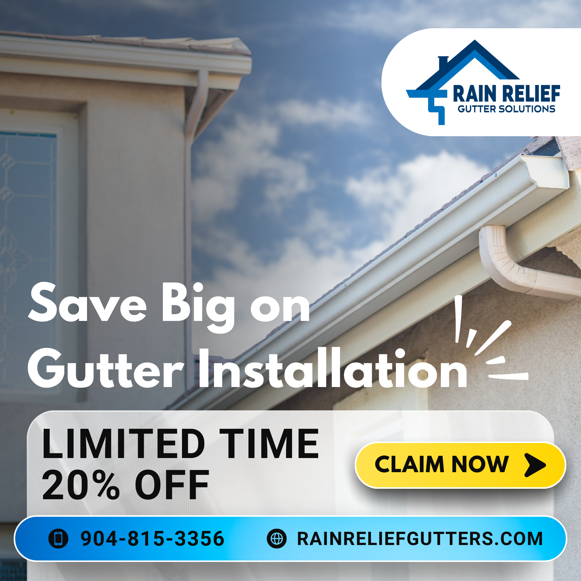 For a limited time only, Rain Relief Gutter Solutions is offering 20% off all gutter installations. Don’t wait—upgrade your home’s gutter system today.